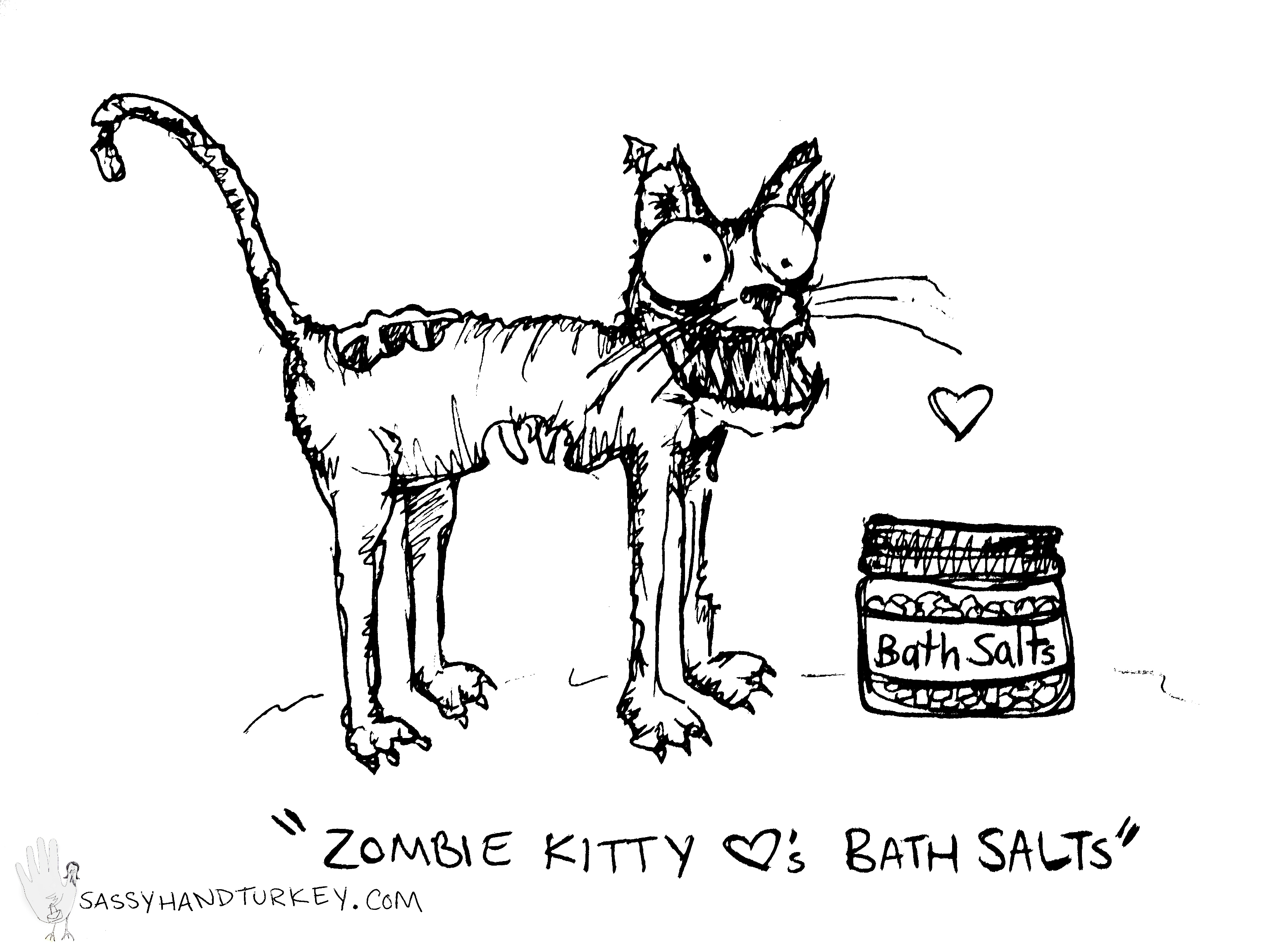 Zombie Kitty Loves Bath Salts Date: June 18, 2012Author: alexandriaska Category: Cats, Monsters Tags: bath salts, cartoon, cat, fun, funny, humor, kitty, zombie, zombie cat Post navigation ← Daddy Long Legs- Happy Fathers Day! Extreme Extraterrestrial → Share this: Share on Facebook (Opens in new window) Facebook Share on Pinterest (Opens in new window) Pinterest Share on Tumblr (Opens in new window) Tumblr Share on X (Opens in new window) X Like Loading... Related